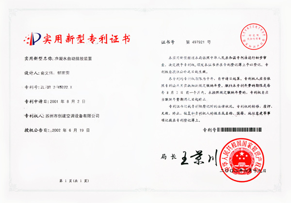 創(chuàng)建開發(fā)設計了一款具有自主知識產權的冷凝水排水器,沒有冷凝水也可以防止外界空氣通過排水口被吸入,可以自動排水。有效降低機組的基礎高度,讓吊頂機組占用頂部的空間更少??朔藗鹘y(tǒng)的存水彎的缺點。