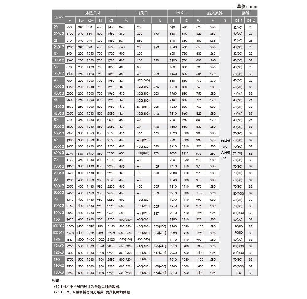 全新風(fēng)機(jī)組(作一般空調(diào)時(shí)不注)