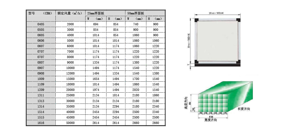 機組的寬度、高度和長度均以160mm為模數(shù)成比例增加.每一檔風(fēng)量均有多種寬、高比例的機組與之對應(yīng),